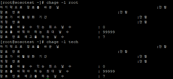 나. chage를 이용한 계정별 설정 변경