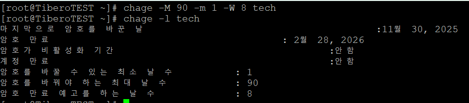 2) chage를 이용한 계정별 설정 변경